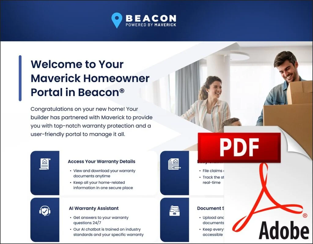 Maverick is fully responsible to you, the homeowner, for total liability of all major structural defects arising during the term of the warranty. Liability is limited to the amount of coverage provided under the warranty as specified in your warranty document, but shall not exceed the original purchase price of the home. Repair and/or replacement shall not extend the term of the warranty. Refer to the warranty confirmation page in your document and review the full warranty document for all coverage exclusions.